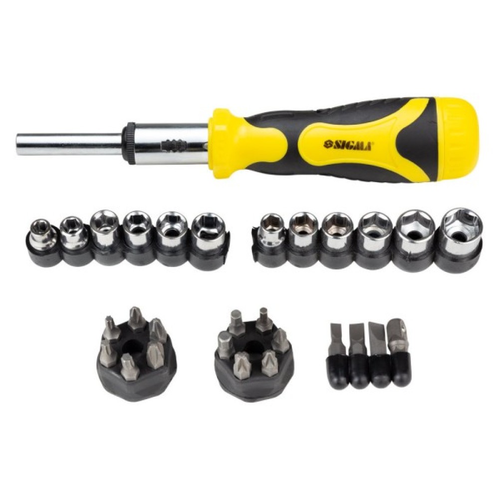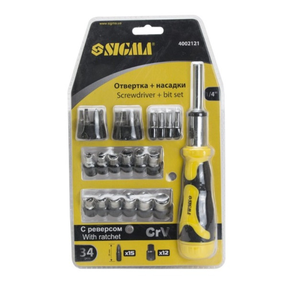 Викрутка Sigma з реверсом і торцевими насадками 1/4” (27 шт. CrV, модель 4002121) - це відмінний вибір для професіоналів та аматорів. Цей універсальний інструмент поєднує в собі викрутку з комплектом біт і стрижнів, тримач для біт і тримач для торцевих головок, що робить його ідеальним помічником у різних завданнях. Завдяки змінним насадкам і храповому механізму, ви зможете легко та швидко впоратися з будь-яким кріпленням. Наконечники включають популярні типи: хрестоподібний (Phillips / PH), хрестоподібний (PZ) та плоский (SL), що додає універсальності і зручності у використанні. Ручка викрутки виготовлена з пластику та гуми, що забезпечує комфортний хват і контроль при роботі. У комплекті йдуть 24 біти, виготовлені з високоякісної хром-ванадієвої сталі (CrV), що забезпечує довговічність та надійність інструменту. Викрутка Sigma з реверсом та торцевими насадками стане незамінним інструментом у вашому арсеналі, дозволяючи легко та ефективно вирішувати будь-які завдання з кріпленнями.