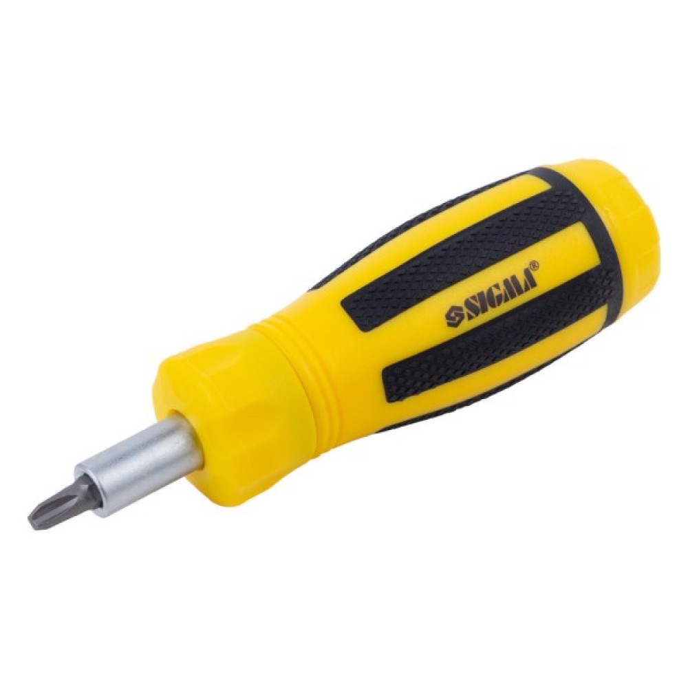 Викрутка Sigma з реверсом та набором біт (модель 4001831) — це універсальний інструмент, який стане незамінним у вашому арсеналі. Цей комплект включає 12 змінних біт, що дозволяє виконувати широкий спектр робіт завдяки різним типам наконечників, таким як хрестоподібний Phillips (PH), шестигранний (H), плоский (SL) та зіркоподібний Torx (T). Храповий механізм забезпечує швидку і зручну роботу, дозволяючи виконувати операції з мінімальними зусиллями. Викрутка-тримач виконана з міцного металу та має ергономічну рукоятку з комбінації гуми та пластику, що гарантує надійний та комфортний хват під час роботи. Матеріал біти виготовлений із високоякісної сталі CrV (хром-ванадій), що забезпечує довговічність та стійкість до зносу. Ця викрутка підходить для професійного використання та домашніх робіт, надійно фіксує біти і забезпечує точність та ефективність виконання завдань. Завдяки реверсивному механізму ви з легкістю можете змінювати напрям обертання, що значно спрощує процес монтажу та демонтажу. Вибираючи викрутку Sigma з реверсом та бітами, ви отримуєте надійний інструмент для різноманітних завдань.
