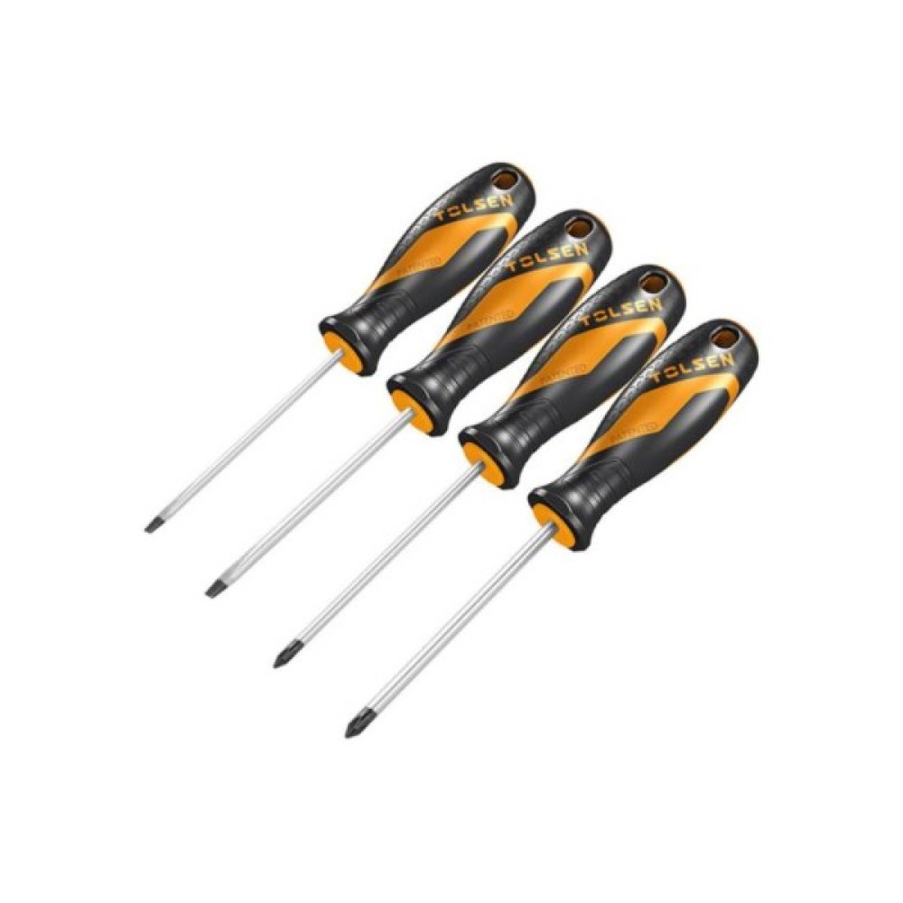 Набір викруток Tolsen 4 шт. — ідеальний комплект для виконання різноманітних завдань з ремонту та монтажу. Високоякісні інструменти з ергономічними ручками забезпечують зручність і точність під час роботи з різними типами кріплень. У наборі представлені викрутки з різними наконечниками для більшої універсальності.