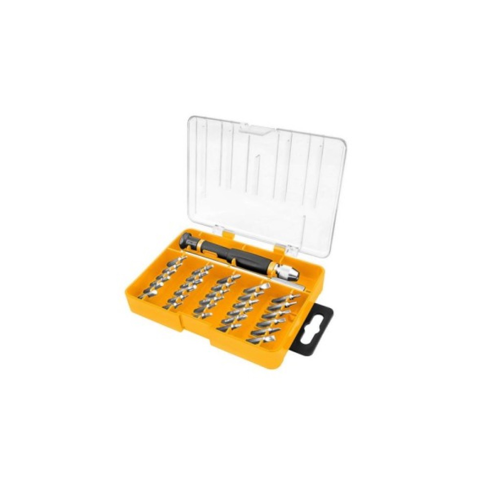 Цей комплект прецизійних біт від бренду Tolsen, що складається з 32 предметів, призначений для точної та акуратної роботи з дрібними кріпленнями. Міні-рукоятка забезпечує зручне користування та легке керування під час ремонту або налаштування електроніки, годинників, окулярів та інших делікатних пристроїв. Якісні матеріали забезпечують довговічність інструментів, а компактний кейс дозволяє зберігати їх у порядку та переносити без зайвих зусиль.