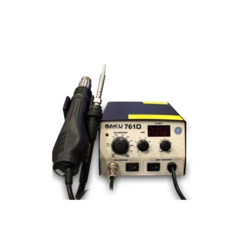 Паяльна станція BAKKU BK-761D - застосовується для демонтажу або пайки різних видів компонентів таких як SOIC, PLCC, QFP, BGA; для обробки термоусаживающихся трубок, сушки, попереднього нагріву, пластичної пайки і т.д. Ручні регулятори дозволять швидко і точно відрегулювати температуру фена. Температура відображається на дисплеї, що дозволить вибрати необхідний тепловий режим.
