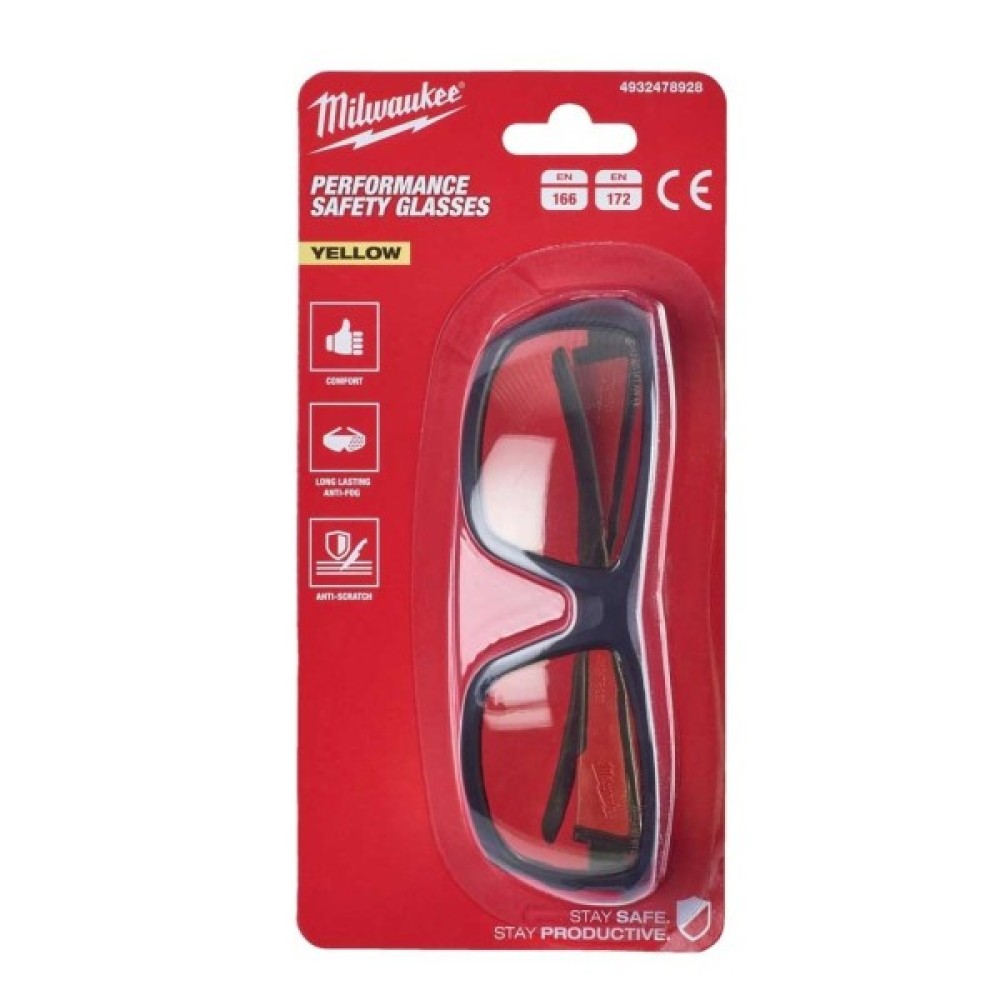 Окуляри захисні Milwaukee PERFORMANCE із захистом від подряпин та запотівання (жовті) - 1 шт. Тканинний мішок – 1 шт. Поставляються у блістері.