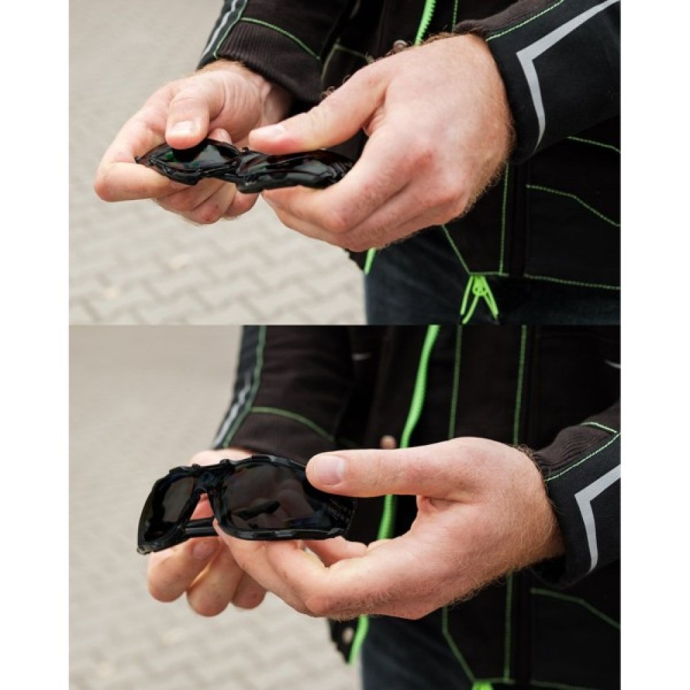 Окуляри захисні з пінопластовою вставкою, тоновані лінзи 97-522 від NEO - це міцні захисні окуляри, що належать до оптичного класу 1. Вони характеризуються класом захисту FT, який гарантує стійкість до високошвидкісних ударів частинок (до 45 м/с) з низькою енергією удару і захист від частинок при екстремальних температурах від -5°C до 55°C.