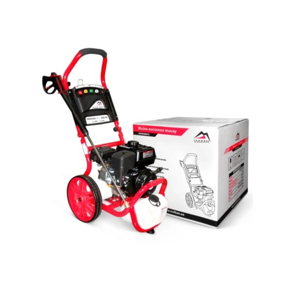 Мийка високого тиску Vulkan SCPW 3000-II - професійний мийний апарат на бензиновому двигуні потужністю 6,5 л. с. Дана модель активно використовується у сфері технічного обслуговування, на виробництві, в роботі комунальних служб і клінінгових компаній. Додатково мийку можна оснастити пінної насадкою або фрезу.