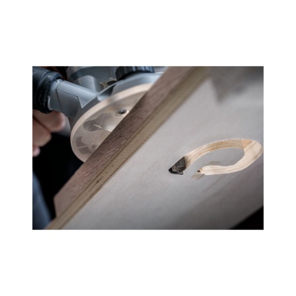 Фреза з хвостовиком 8 мм, має діаметр 9,5 мм, загальну довжину 68 мм, робочу — 25,4 мм. Виготовлена з твердого сплаву, з двома лезами та шарикопідшипником, фреза призначена для вибірки урівень і зняття фасок деревних, абразивних листових матеріалів. Зручна для роботи з окантовочними планками, наприклад, при виробництві меблів, виготовленні ящиків. Шарикопідшипник допомагає точно вести по заготівлі без шаблону.