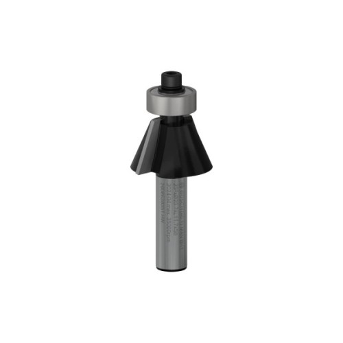 Фасочна фреза з хвостовиком 8 мм, шириною 5,5 мм, діаметром 23,7 мм, робочою довжиною 12 мм, загальною 54 мм, з кутом 25 градусів — робоча насадка для вертикального фрезера. Виготовлена з твердого сплаву, з двома лезами, шарикопідшипником фреза застосовується для зняття фасок та вибірки врівень з деталей з деревини та листових матеріалів, у тому числі з покриттям. Підходить для виготовлення тонких декоративних пазів на меблях. Шарикопідшипник дозволяє легко вести інструмент прямо по заготівлі без використання шаблону.