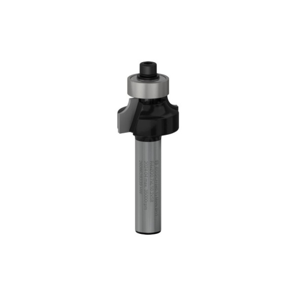 Карнизна фреза з хвостовиком 8 мм, діаметром 4 мм, робочою довжиною 10,5 мм і загальною 53 мм, з двома лезами і шарикопідшипником — робоча насадка до вертикально-фрезерних машин. Надає кромкам заготовок з деревини, а також абразивних матеріалів, округленої форми.