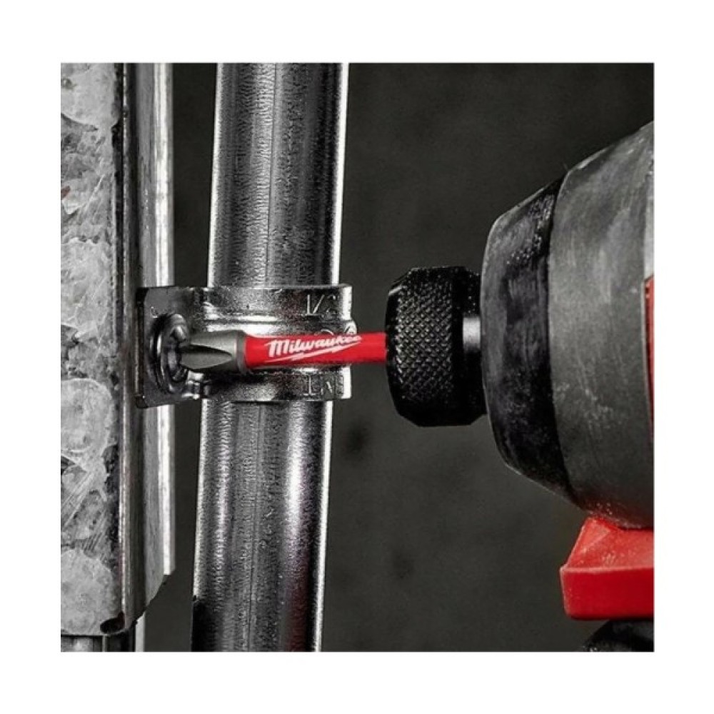 Геометрія Shock Zone розроблена для гнучкості: Shock Zone контролює тиск, що виникає на головці, що знижує ймовірність поломки наконечника. Завдяки поєднанню конструкції зони удару та спеціальної термообробки удари амортизуються, долото стає гнучким та податливим. Завдяки унікальній формулі металу Milwaukee біти Shockwave більш стійкі до ударів.