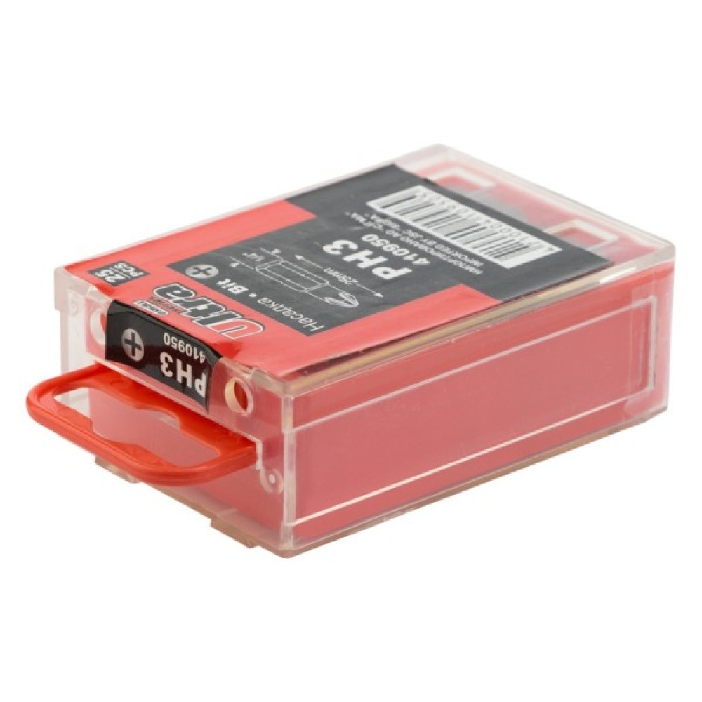 Набір біт PН3×25мм 1/4" 25шт S2 (пласт кейс) ULTRA (4010302) призначений для використання в ручному, механізованому та електроінструменті під тип шліців PH. Біти виготовлені з легованої сталі S2, яка забезпечує високі експлуатаційні показники.