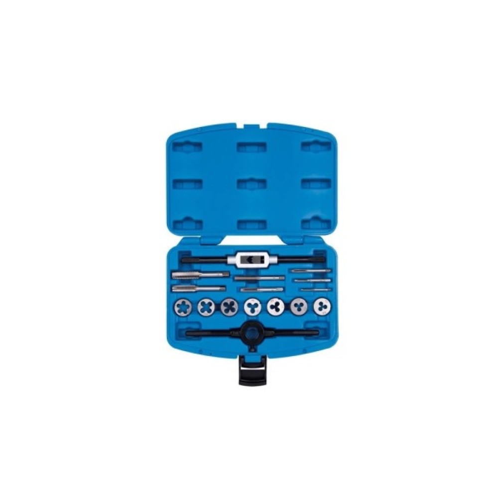 тримач для плашок - 1 шт; мітчики - 9 шт; тримач для мітчиків - 1 шт; плашки - 7 шт