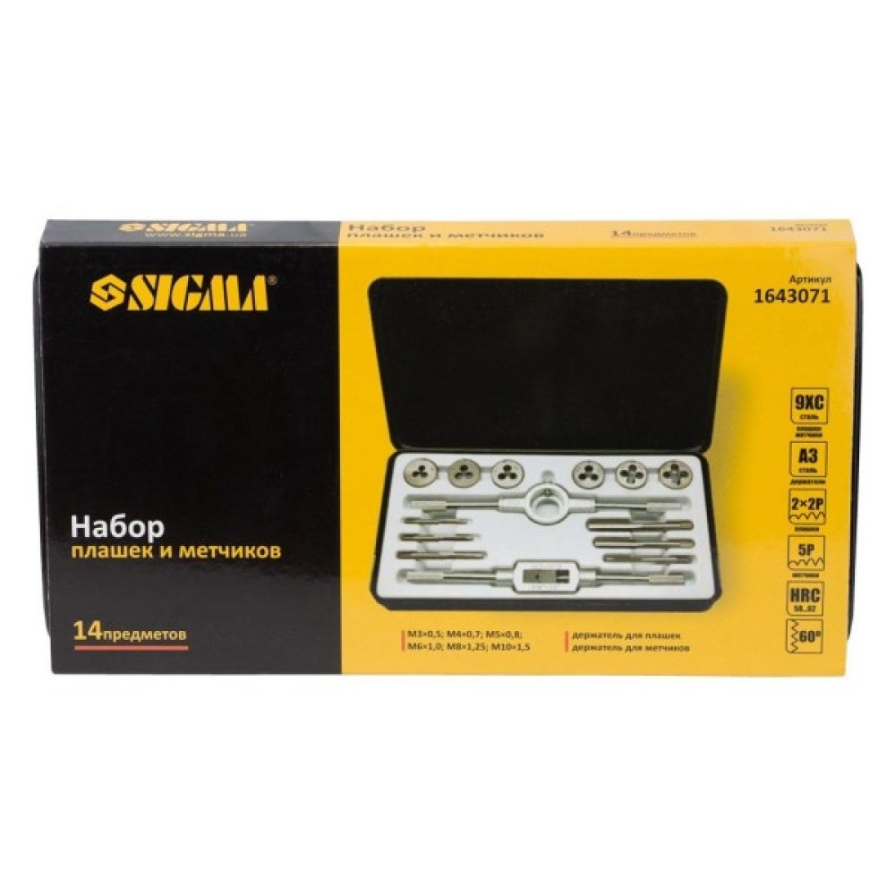 Набір мітчиків і плашок Sigma 14 предм., металевий кейс (1643071)