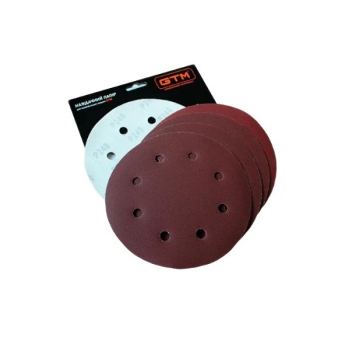 Наждачний папір GTM круг з отворами 180мм Р-80, липучка, 5шт. (SZS180L P80)