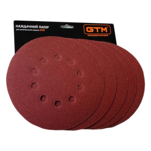 Наждачний папір GTM круг з отворами 215мм Р-240, липучка, 5шт. (SZL225FV P240)