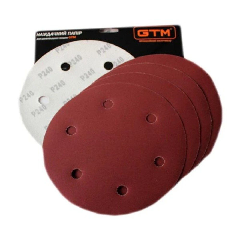 Наждачний папір GTM круг з отворами 215мм Р-80, липучка, 5шт. (SZB225V P80)