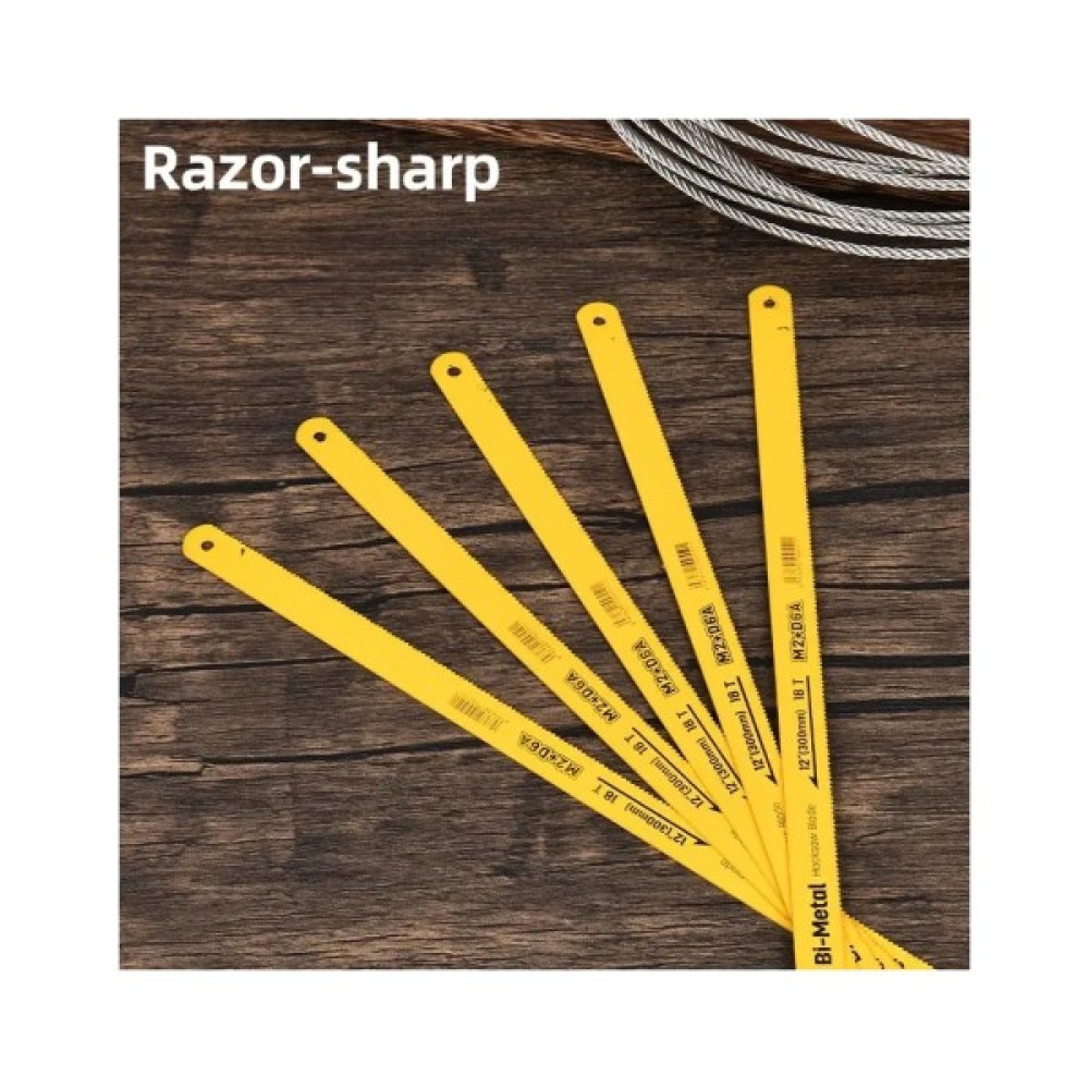 Потрібне міцне полотно для ножівки по металу? Це біметалеве полотно 12"" (300 мм) з 18 зубами виготовлене зі сталі M2+D6A — гнучке, довговічне та надійне. Підходить для стандартних рамок ножівки, упаковане в пластикову коробку. Створене для точного та чистого різу.