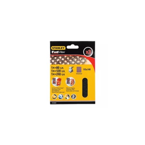Сітка абразивна Stanley шліфувальна 115х140 мм, 3 листи, перетин 80,120,240, для KA400/450 (STA39082)