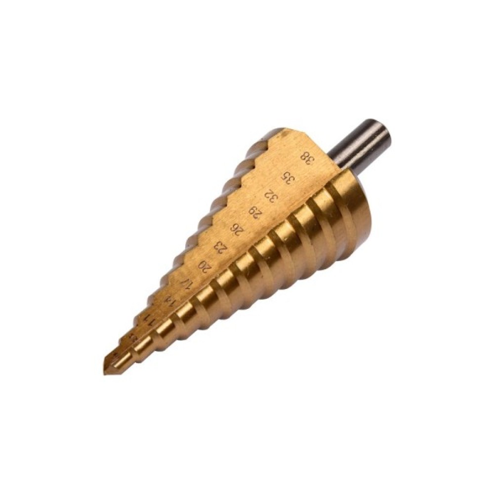 Свердло ступеневе для металу YATO YT-44740 призначене для центрування, свердління й зняття фаски у високосортної неіржавкої сталі, конструкційної сталі, сталі холодної прокатки, а також у кольорових металах, сталевих листах і пластиці. Свердло виготовлене зі швидкорізальної сталі HSS 4241, покритої титаном. Забезпечує тривалий термін експлуатації, швидке, високопродуктивне, якісне свердління, максимальне видалення шламу з отвору.