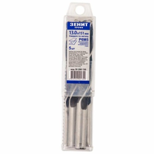Свердло Зеніт "ПРОФІ" Р6М5 по металу 13.0х151 мм (5 шт) (30200130)