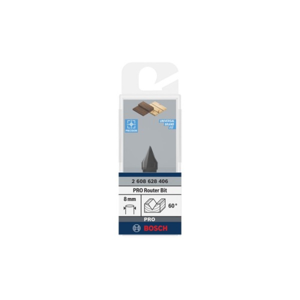 Фреза, Bosch, Professional, пазова, Vподібна, V, Std, S8, D11, L14, 60°, 2608628406