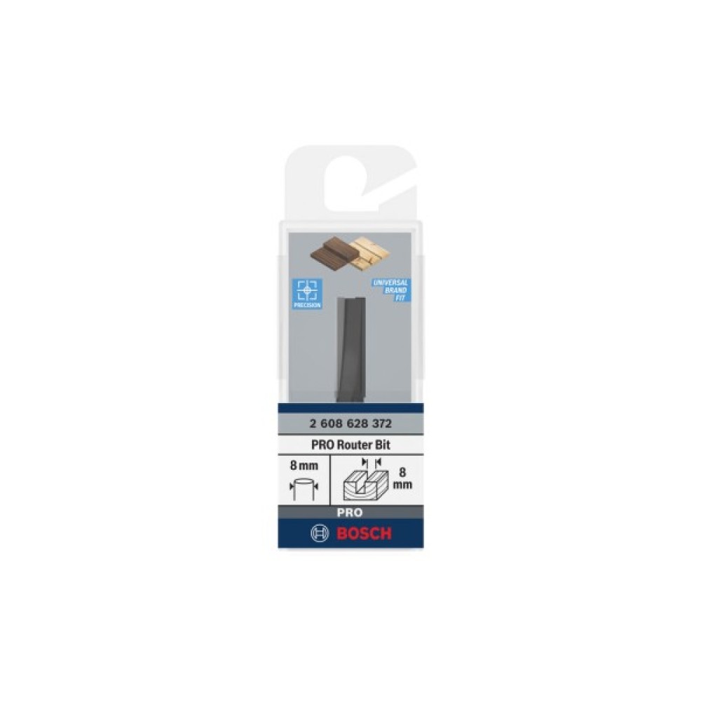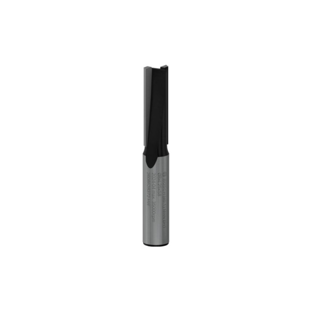 Твердосплавна пазовая фреза з хвостовиком 8 мм діаметром 8 мм, робочою довжиною 25,4 мм та загальною — 56 мм — робоча насадка до вертикально-фрезерних машин. З двома ріжучими кромками ця фреза філігранно вирізає невеликі пази під з'єднання, декоративні виїмки та шліци для прокладки ущільнювачів у деревині, листових, полімерних та абразивних матеріалах, наприклад, Corian®. Нею зручно обробляти предмети та деталі будь-якої конфігурації.