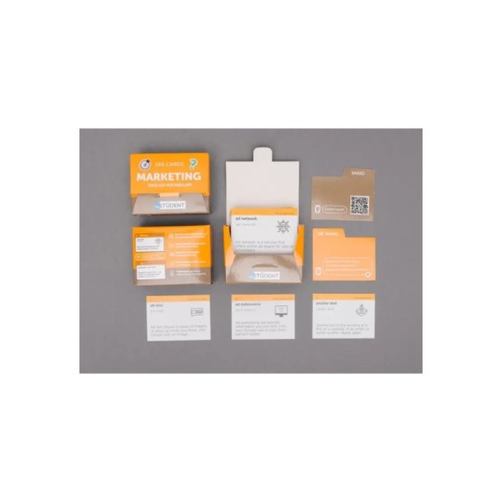 Маркетолог — одна з найпопулярніших та водночас найскладніших професій. Люди, які займаються маркетингом, постійно змушені вчитися — відвідувати конференції, вебінари, курси, читати статті та дослідження... Цей список можна продовжувати довго. І без англійської тут ніяк, адже навіть багато маркетингових термінів походять саме з цієї мови. І як їх розуміти без певних знань? У наборі «Marketing English» ми зібрали необхідний мінімум слів та термінів, без яких точно не обійтися в цій професії!