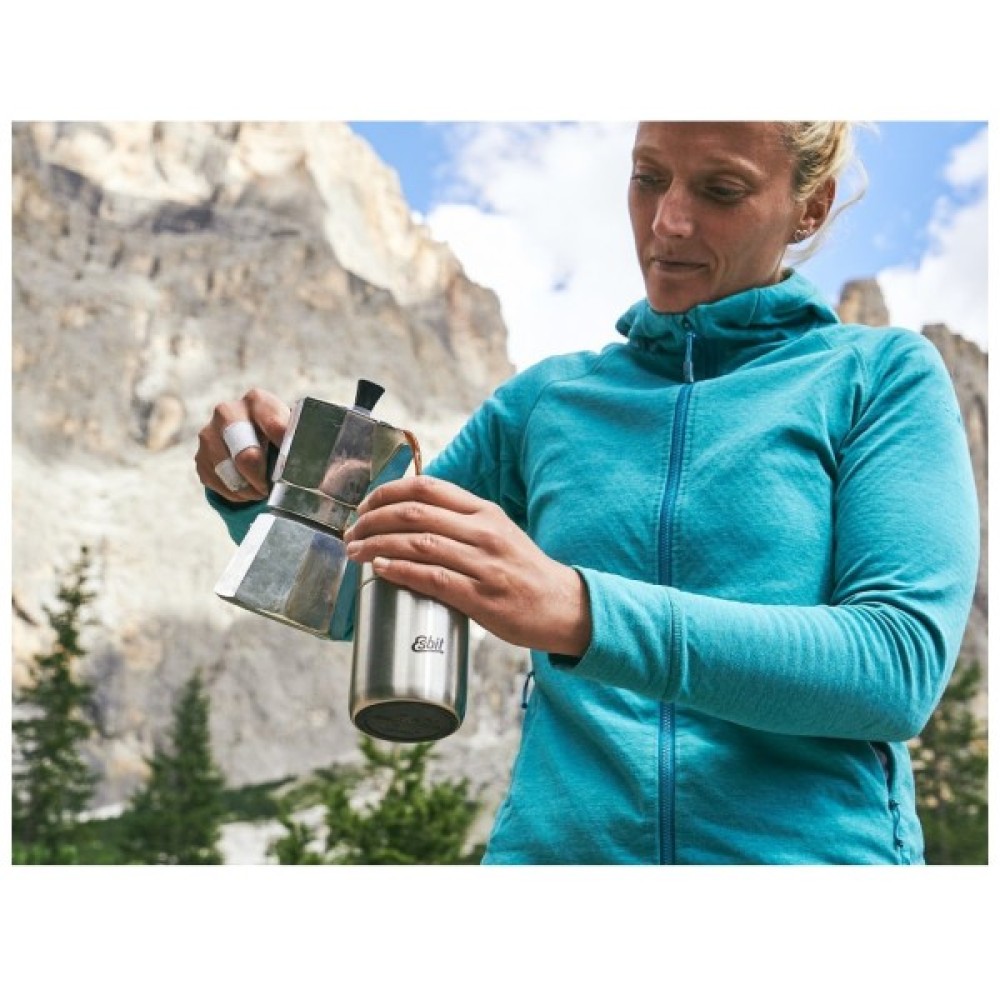 Термогорнятко Esbit MGF450TL виготовлене із міцної нержавіючої сталі, тому зберігає напій теплим чи холодним довше. Надійна технологія ізоляції, у свою чергу, запобігає нагріванню або охолодженню самого горнятка. Ємність має практичний прес із питним отвором вгорі. Розміри термогорнятка зручні для перенесення в руці, а також для транспортування у машині.