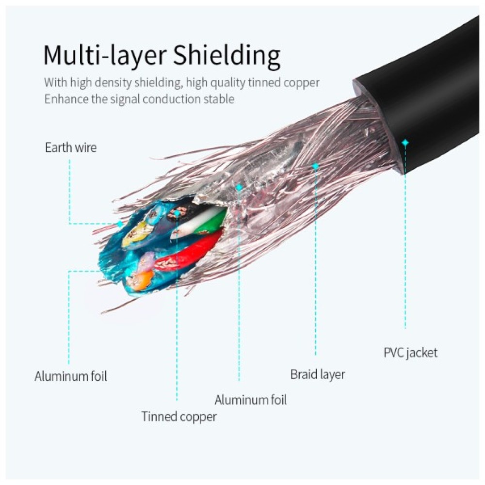 - Багатошарове екранування, високоякісна луджена мідь, стабільна провідність сигналу
