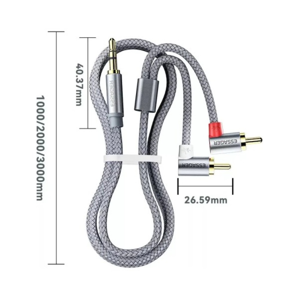 Кабель мультимедійний 3.5mm M to 2xRCA M 2.0m 90° corner Essager (EYPWT-MYA0G-P)