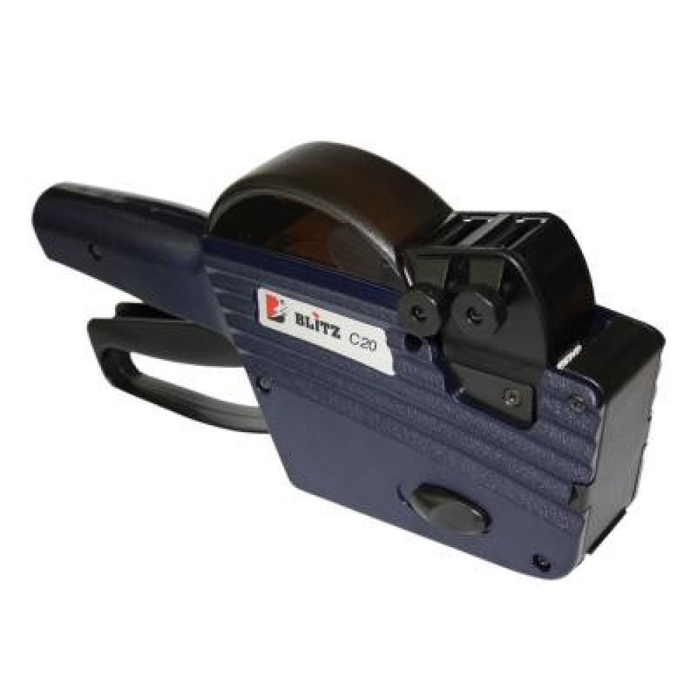 Етикет пістолет Blitz С20 - це зручне ручне механічний пристрій, призначений для маркування товару за допомогою самоклеючих етикеток розміром 26х16 мм Дана модель дозволяє наносити на етикетки чорнильні відбитки цифрових символів в два рядки. Додаткові вбудовані символи дозволяють визначити тип інформації в кожному рядку, наприклад: у верхньому рядку першим символом можна встановити вбудований символ - код, а далі набрати код товару до 9 знаків; у другому рядку може бути ціна, для позначення якої можна використовувати два вбудованих символу "Щна" або один вбудований символ "грн" після чого слідують цифрові символи, що позначають ціну товару.