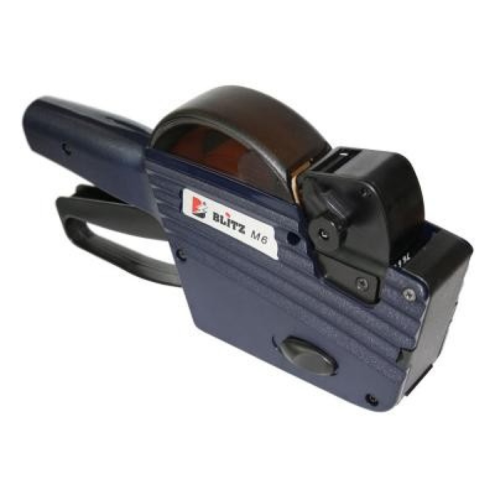 Етикет-пістолет Blitz M6 використовується для маркування товару, що знаходиться на вітрині, або при необхідності забезпечити читаність з відстані. На друк виводяться 6 символів розміром 3×8 мм, ширина лінії 1 мм. Пістолет ідеально підходить для нанесення цінників в аптеках, магазинах та супермаркетах. Етикет – пістолет Blitz M6 має змінний фарбувальний валик.