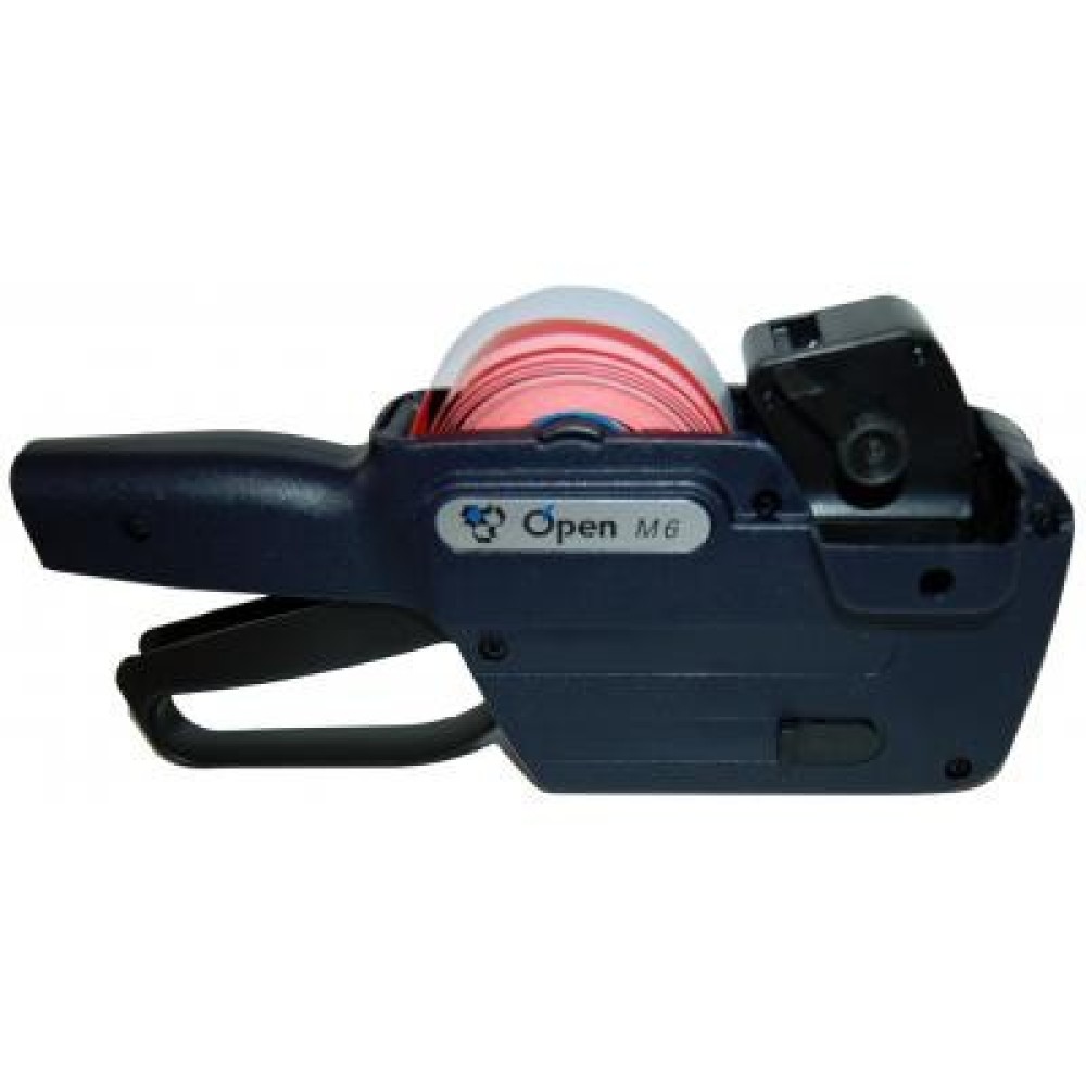 Однорядковий етикет-пістолет Open M6 призначений для нанесення цифробуквенної інформації на самоклеючі етикетки в один рядок. Пістолети дозволяють кодувати товар, вагу, дату, термін придатності, а також ціну. Використовуються у виробництві, оптово-роздрібній торгівлі, на складських комплексах і т. д.