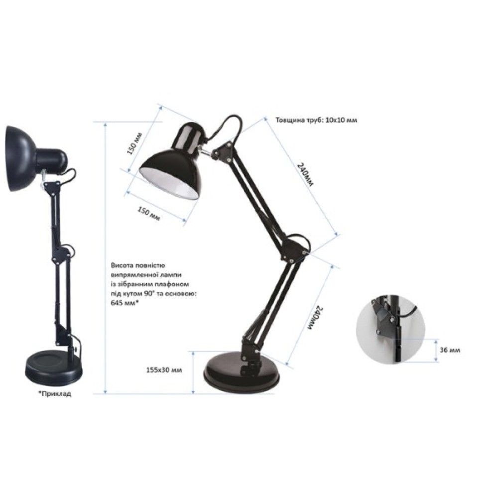 - Модель: Ridy-027 E27 зі струбциною чорна