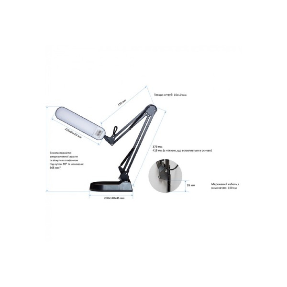 Настільна світлодіодна лампа Євросвітло Ridy-09_SP 9Вт — це потужне та стильне рішення для організації комфортного освітлення робочого простору. Її ключовою особливістю є висока яскравість у поєднанні з подовженим плафоном, що забезпечує рівномірне освітлення більшої площі столу.