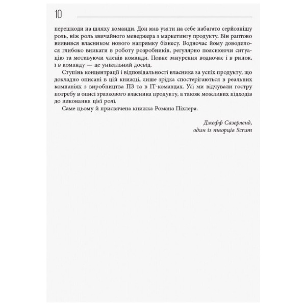 Ця книжка — незамінний помічник для всіх, хто працює власником продукту або прагне опанувати цю роль, а також для керівництва й тренерів, зацікавлених у впровадженні гнучкої системи управління продуктами.