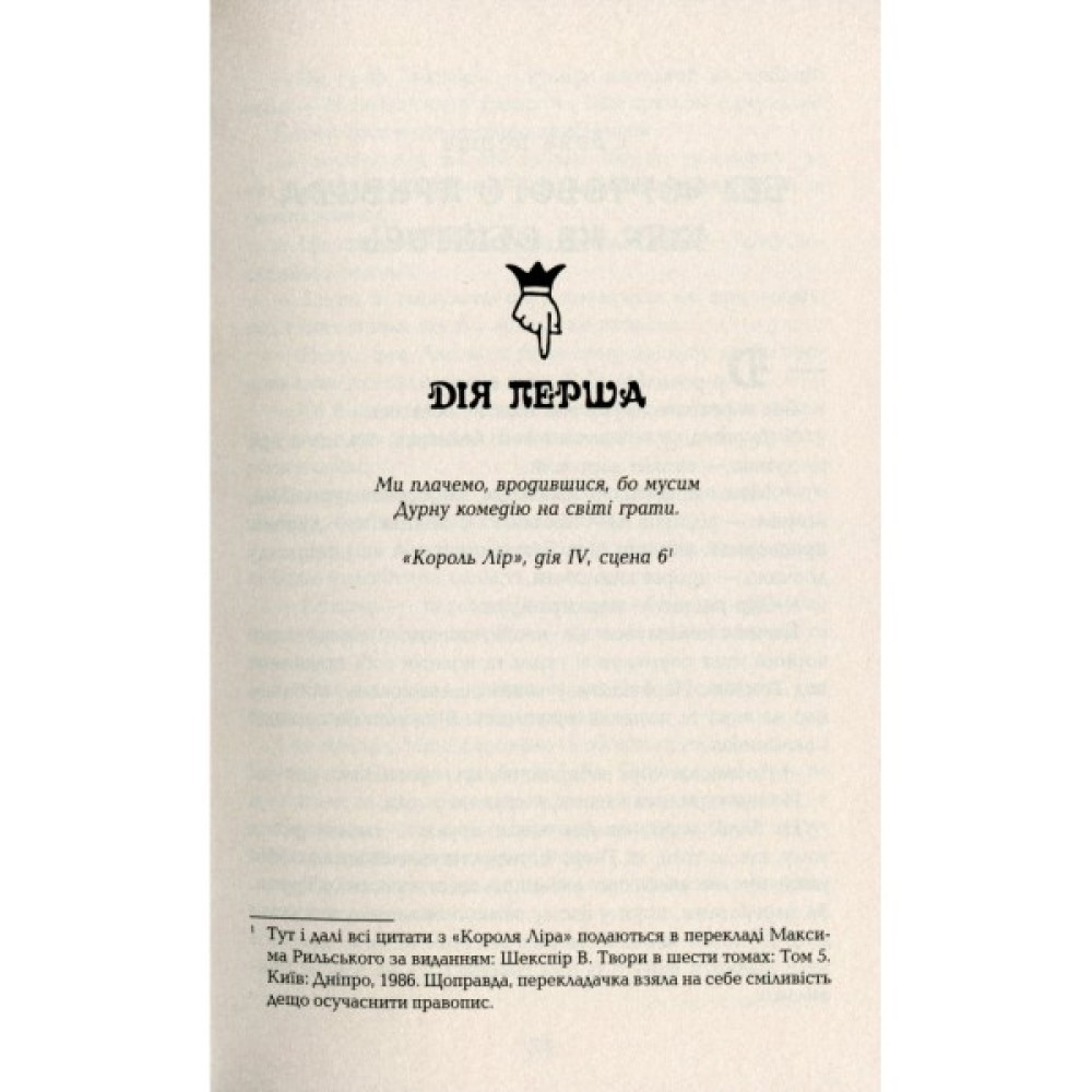 Така вона і є, ця історія про драматичний останній рік життя шекспірівського короля Ліра, яку розповідає королівський блазень на ймення Капшук — і саме так, як і належить справжньому природженому блазневі.