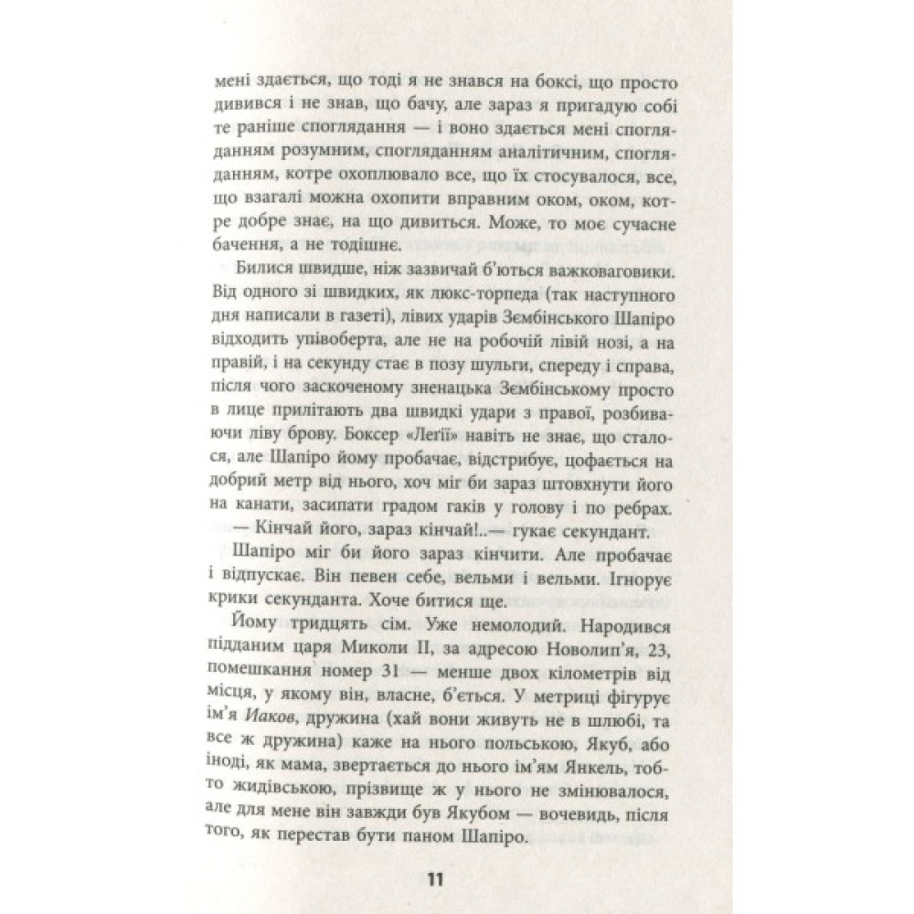 Ізраїльський генерал Моше Інбар, який тоді, в 37 році, був «хлопцем Шапіро», його тінню, тепер, 50 років по тому, пише в Тель-Авіві історію передвоєнної Варшави. То був світ збройних сутичок, борделів, наркотичного куражу і зруйнованих доль. А десь там уже підносилось передчуття близької трагедії.