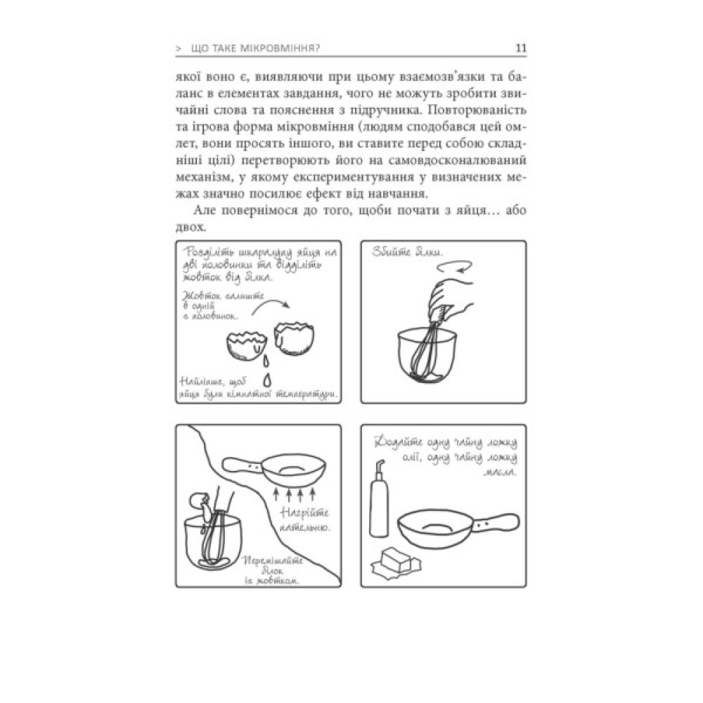 Забудьте про 10 000 годин напруженої практики, які необхідно витратити, щоби опанувати якесь одне вміння! Справжній шлях до успіху та досягнень полягає в прагненні вдосконалити безліч мікровмінь — до того ж із користю. Поєднуючи нейронауку, позитивну психологію, самодопомогу, багато цікавих фактів та зрозумілі ілюстрації, ця чудова книжка заохочує відкинути всі ті причини, через які ми «не можемо» вчитися та розвиватися — це занадто складно, нам бракує часу, ми не експерти, це треба починати в юному віці,— завдяки корисним і приємним умінням. Бажаєте опанувати кулінарне мистецтво — почніть із приготування ідеального омлету. Хочете навчитися танцювати — почніть із ходи танго. Прагнете стати більш креативним, розумним і щасливим — прочитайте цю книжку!
