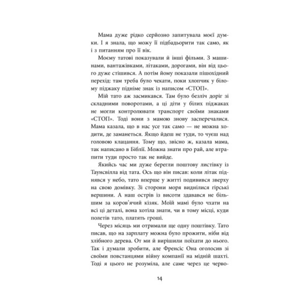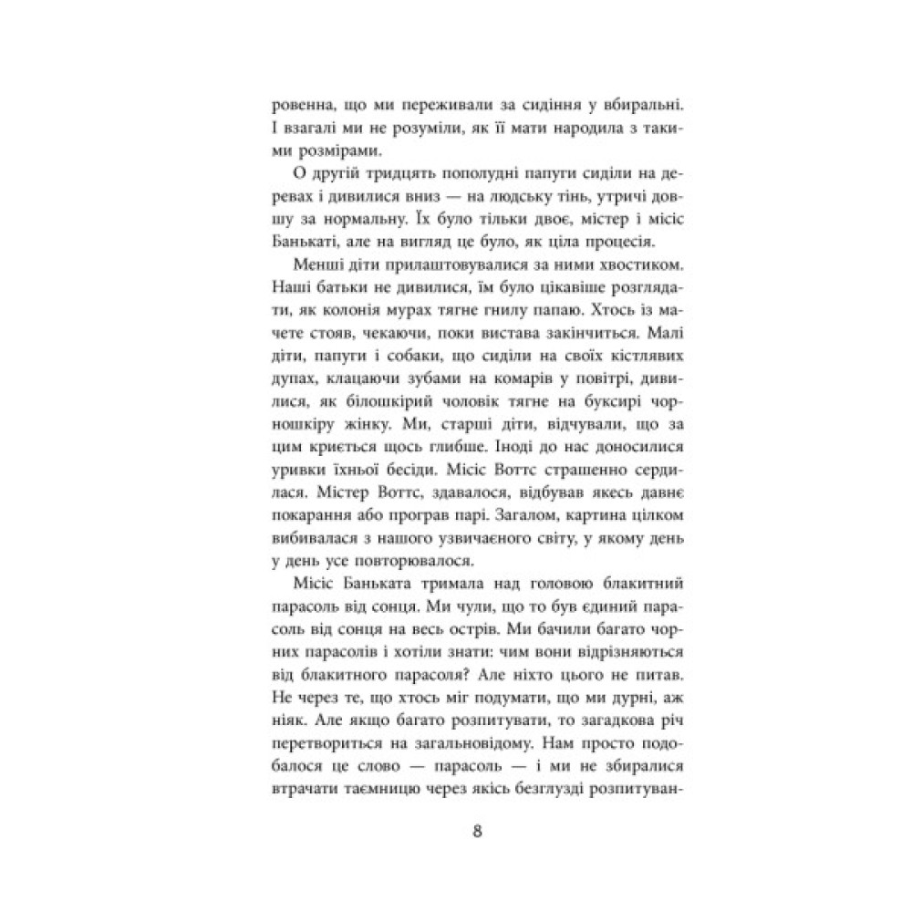 «Діти, — каже він, — я познайомлю вас із містером Діккенсом». Не так вже й багато він знає, цей Воттс, але те, що знає, підносить дітям як дорогоцінний дар. Трохи любові та історій, над якими варто замислитися і навіть додумати, які вчать бути готовими до змін, зживатися з ними, однак залишатися людиною. Глибока і яскрава книжка про боротьбу двох ідентичностей в душі однієї маленької дівчинки. Про становлення особистості, про зраду та самопожертву, на які здатен кожен із нас. Про війну і її жахи. Про ревнощі та відвагу.