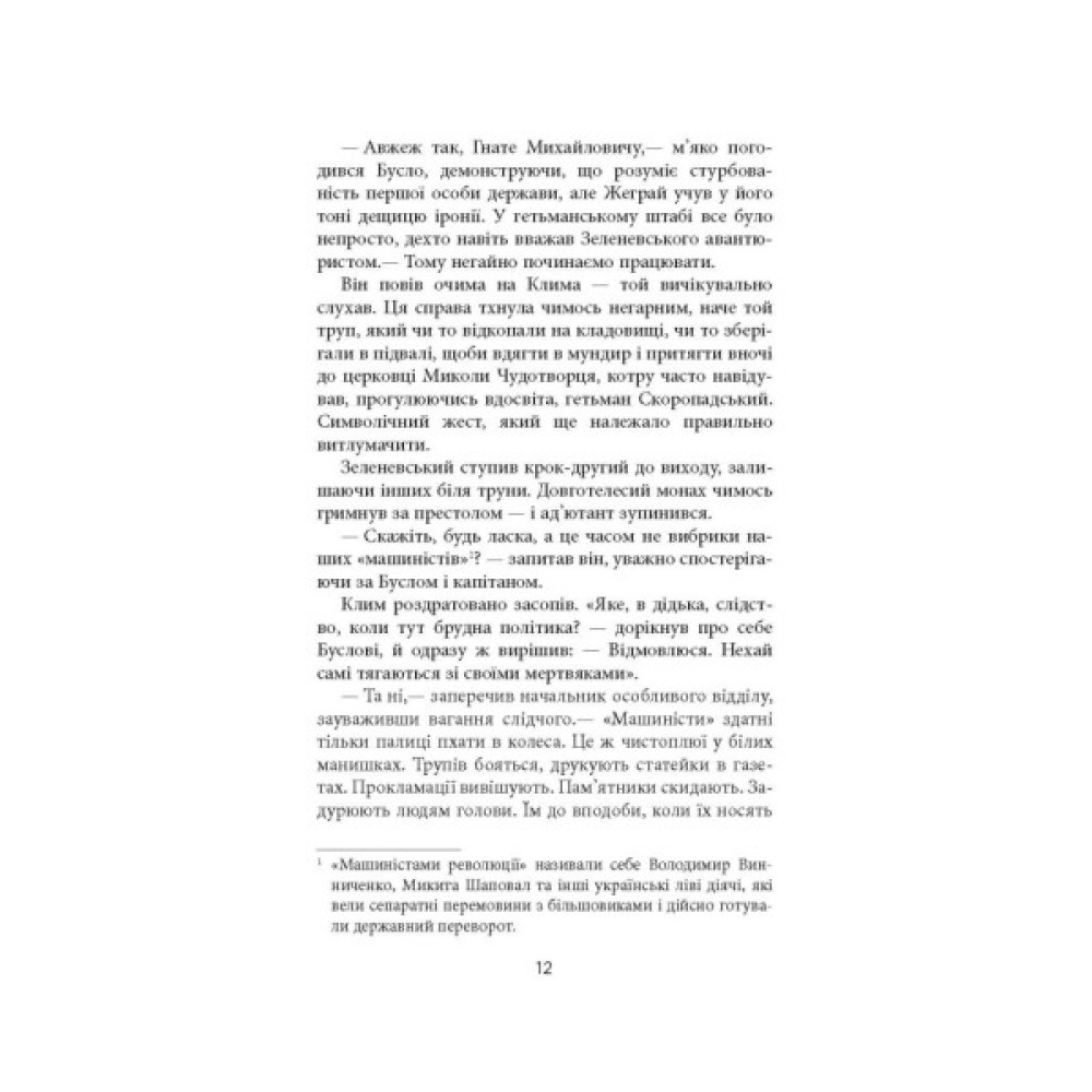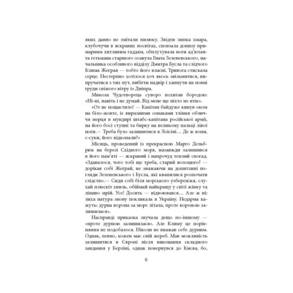 Політичні ігрища, протистояння розвідслужб західних держав, кримінальний світ тогочасного Києва, жорстокі злочини заради амбіцій, таємні заколоти, зрада в оточенні гетьмана… Певно, тільки колишній капітан київської поліції, досвідчений слідчий Клим Жеграй у змозі розібратися у цьому найзаплутанішому павутинні.