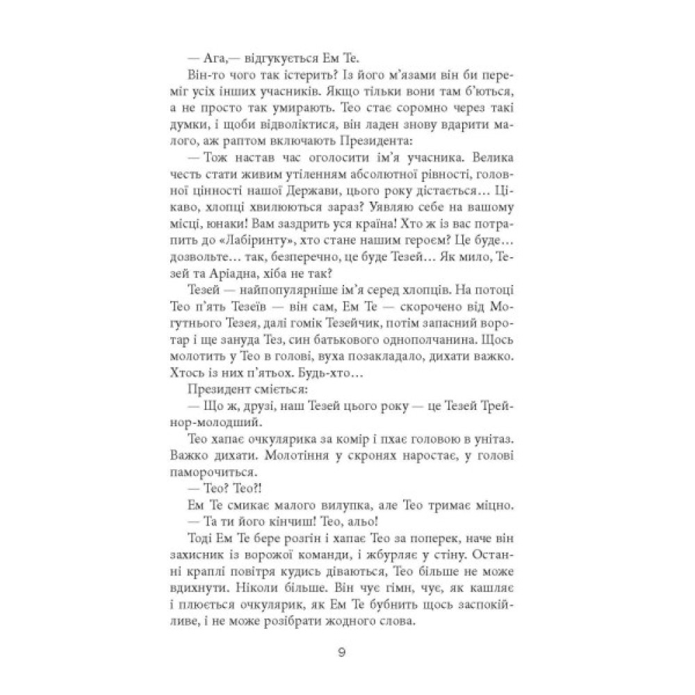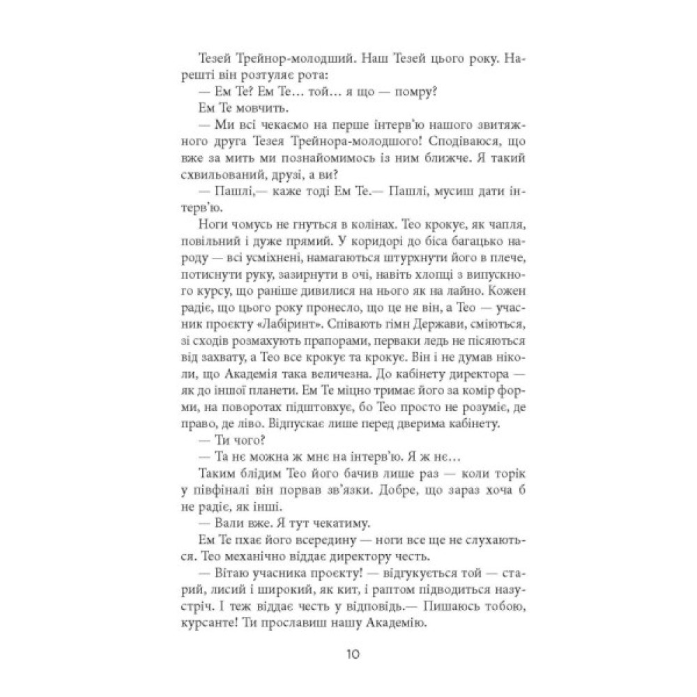 Тоталітарна країна з закритими кордонами. Соціальні мережі, кіно та телебачення заборонені. Щодня проходять загальнодержавні медитації, психотерапія є примусовою, панує культ здорового способу життя. Держава — найвеличніша соціальна установа у світі. А ще щороку будь-хто може потрапити до «Лабіринту» — засекреченого проєкту, участь у якому — найбільша честь. Кожен порядний громадянин знає, що всі чутки про смерті у «Лабіринті» — це лище ниці маніпуляції так званого «Опору». Пані Сорок Третя, високопоставлена керівниця, втратила сина у шостому «Лабіринті». Тепер вона очолює десятий проєкт і намагається врятувати одного з учасників хлопця на ім'я Тео, бо сама знає не з чуток, що насправді там відбувається…