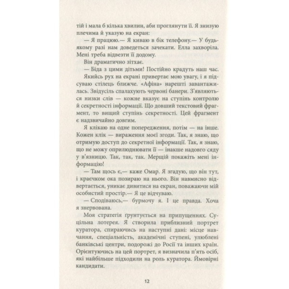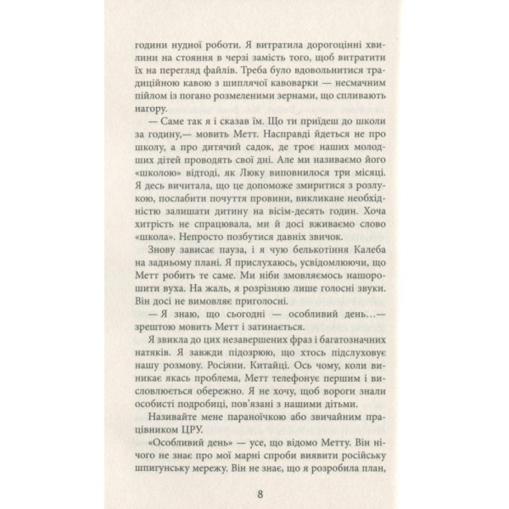 Героїня роману Карен Клівленд — молода жінка, аналітик контррозвідки ЦРУ. Вона має невідкладне завдання — розкрити керівників мережі російських «сплячих агентів» у Сполучених Штатах. Отримавши доступ до комп’ютера особи, яка, скоріш за все, є резидентом, Вівіан виявляє секретні досьє російських агентів, які перебувають на території США під глибоким прикриттям й очікують сигналу до дії. Кілька кліків мишкою — і її світ змінюється до невпізнанності. Відтепер її робота, чоловік, навіть її четверо дітей опиняються під загрозою. Героїня стикається з болісним вибором між лояльністю та зрадою, вірністю присязі та підступністю, любов’ю та підозрою. Вона розуміє, що не може довіряти практично нікому, і з цим потрясінням їй ще належить упоратися…