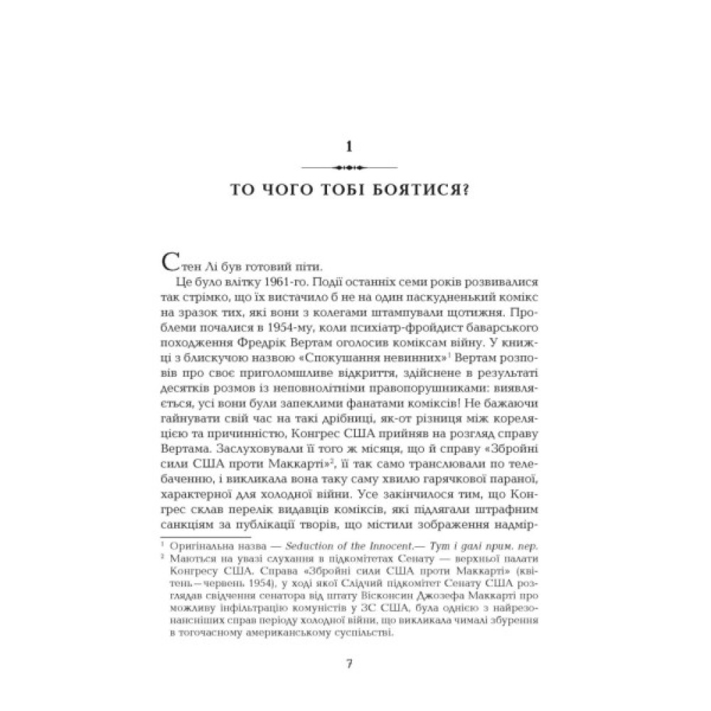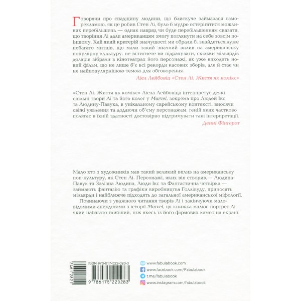 Ім’я Стена Лі відоме кожному фанату коміксів Marvel. Екранізацій вигаданих ним історій чекають мільйони глядачів. Неперевершений, яскравий світ, у якому землян від усяких лих захищають Капітан Америка, Галк, Людина-Павук і безліч інших супергероїв, створив саме він — Стен Лі. Він став одним із перших, хто спробував у дешеві мальовані історії закласти щось більше, ніж захопливий сюжет і банальне протистояння добра і зла. Його персонажі, наділені надприродними здібностями, схожі на людей — страждають, сумніваються, ненавидять, кохають. Саме це робить їх такими привабливими для читача. Ліел Лейбовіц розказує біографію Стена Лі в контексті розвитку жанру коміксів і доводить, що найбільше сил й енергії Лі вклав у розвиток одного особливого персонажа — себе самого.