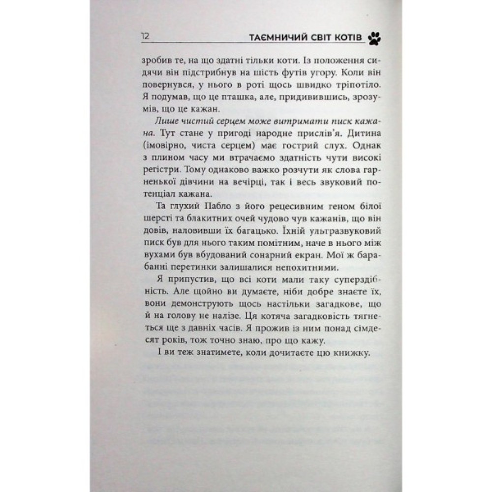 Щоб довести наявність у цих тварин надприродних здібностей, а також по-новому усвідомити роль котів у культурі та міфології різних країн та епох, автор звертається до міфів, фольклору та науки.