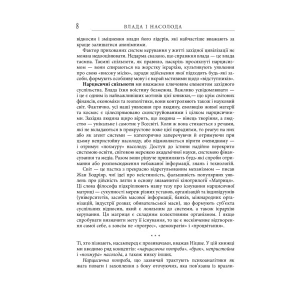 «Влада і насолода» — книжка для тих, хто прагне вирватися з полону ілюзій і повернути собі свободу думки, свободу почуттів і розуміння того, чим насправді є життя.