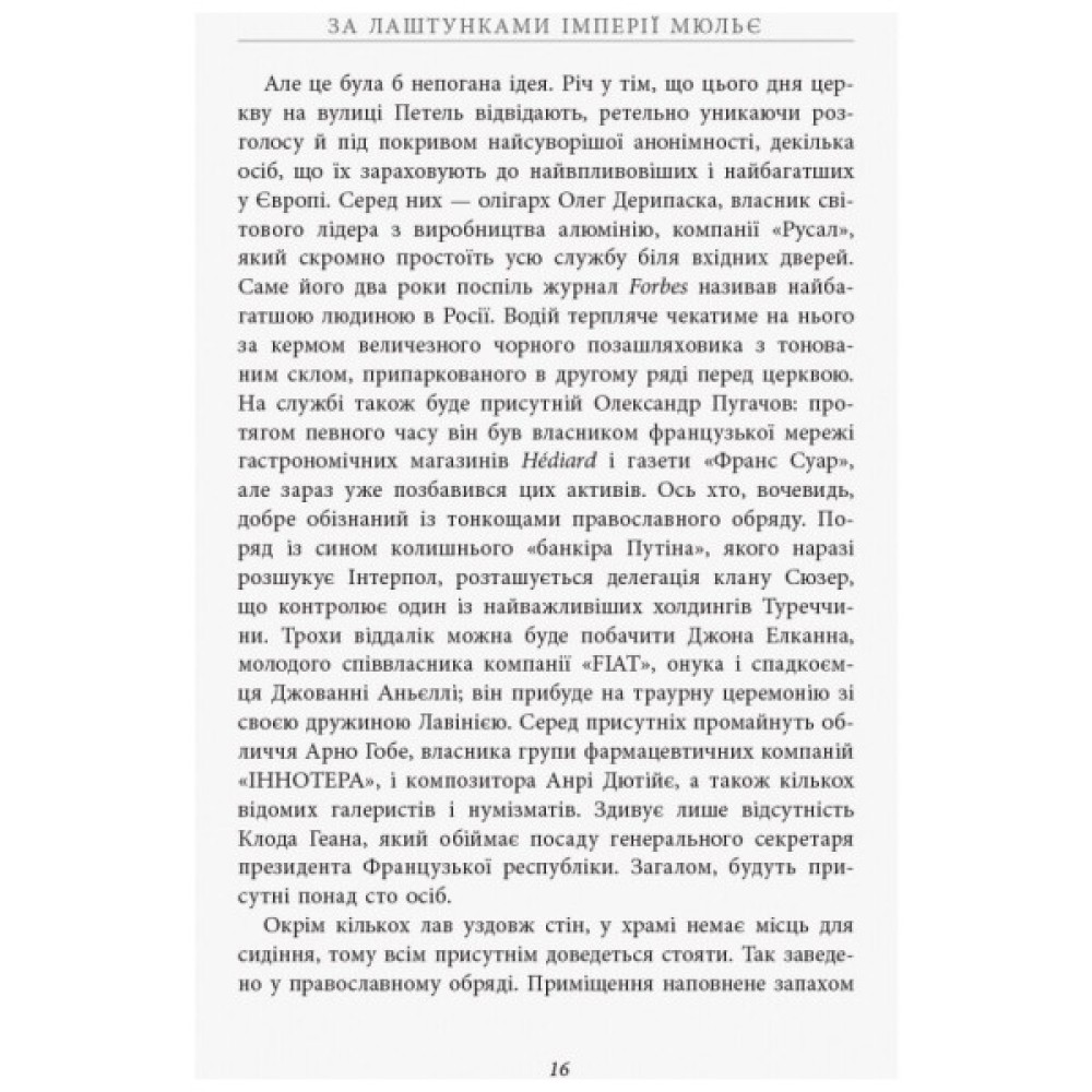 Мюльє - надзвичайно заможна родина Франції, яку найчастіше ототожнюють із мережею гіпермаркетів "Ашан". Книжка Бертрана Гобена з'явилась у результаті ґрунтовного і глибокого журналістського розслідування. Читач дізнається, як було сформовано цю унікальну підприємницьку структуру, хто насправді виконував у ній ролі лідерів і що приховано за завісою таємничості, яка оточує реальне життя, діяльність та інтимну історію клану Мюльє, сповнену драматизму й гострих конфліктів.