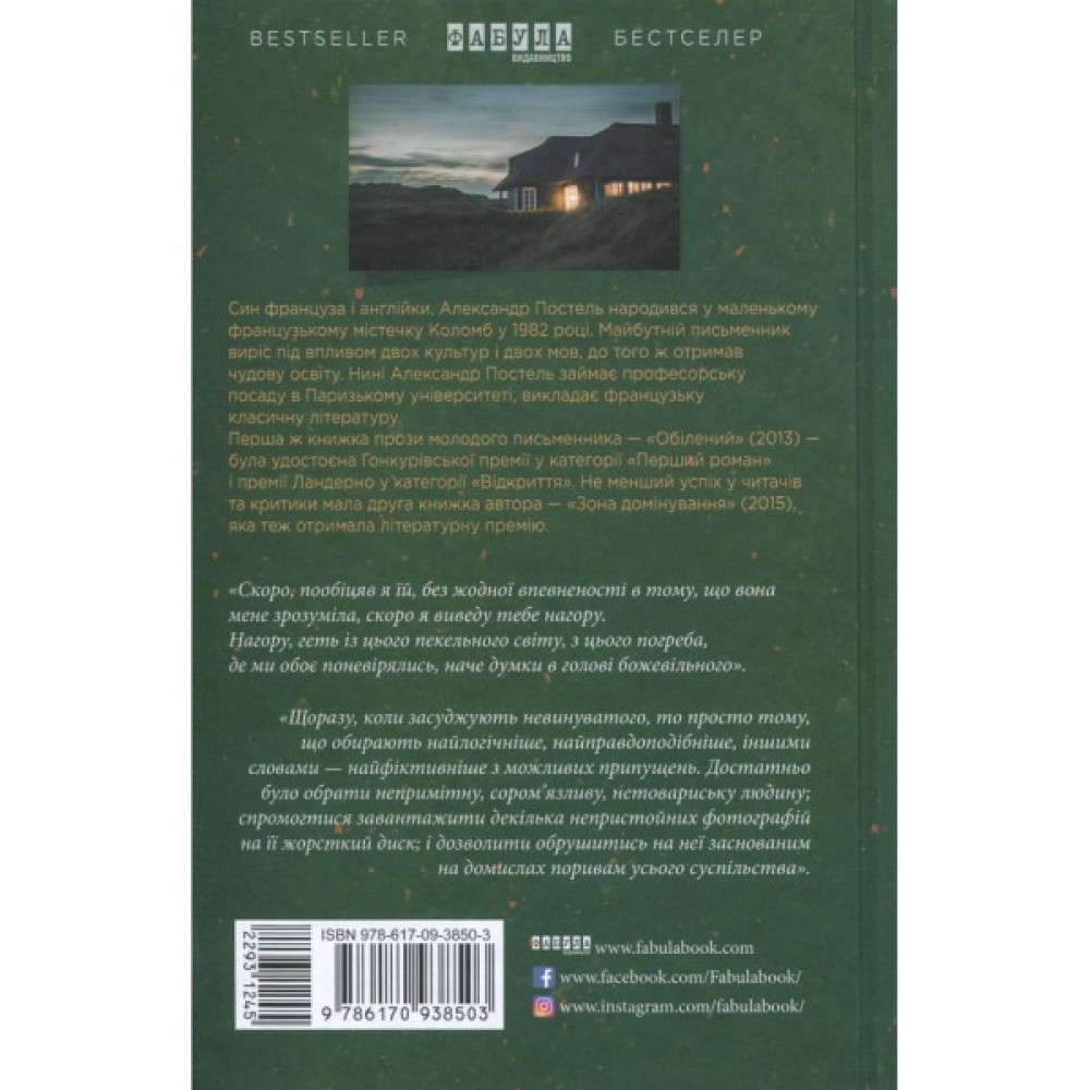«Фабула» знайомить читача з двома короткими романами молодого французького письменника - «Зона домінування» й «Обілений». Александр Постель - безжалісний та іронічний автор, він майстерно створює тривожну і моторошну атмосферу, постійно заплутує і приголомшує читача раптовими одкровеннями. Він чудово зображує стадні реакції суспільства на голослівні звинувачення і ті справжні почуття, що ховаються під благопристойною личиною терпимості і політкоректності: ревнощі, хворобливу тривогу, бажання заподіяти біль ближньому, взаємну ненависть і байдужість.