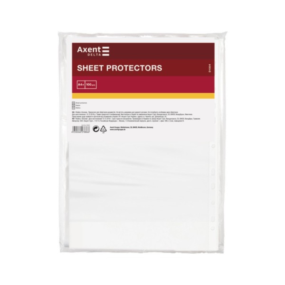 Файли захищають папери від оточуючих впливів і механічних пошкоджень. Завдяки наявності перфорації документи в файлах можуть зберігатися в папках-реєстраторах, в папках на кільцях, в папках-швидкозшивачах та ін. Це забезпечує систематизацію та зручність у роботі з документами. Файли Delta by Axent мають гладку глянцеву прозору поверхню. Виготовлені з поліпропілену. Корінець надійно спаяний з файлом. Щільність 40 мкм.
