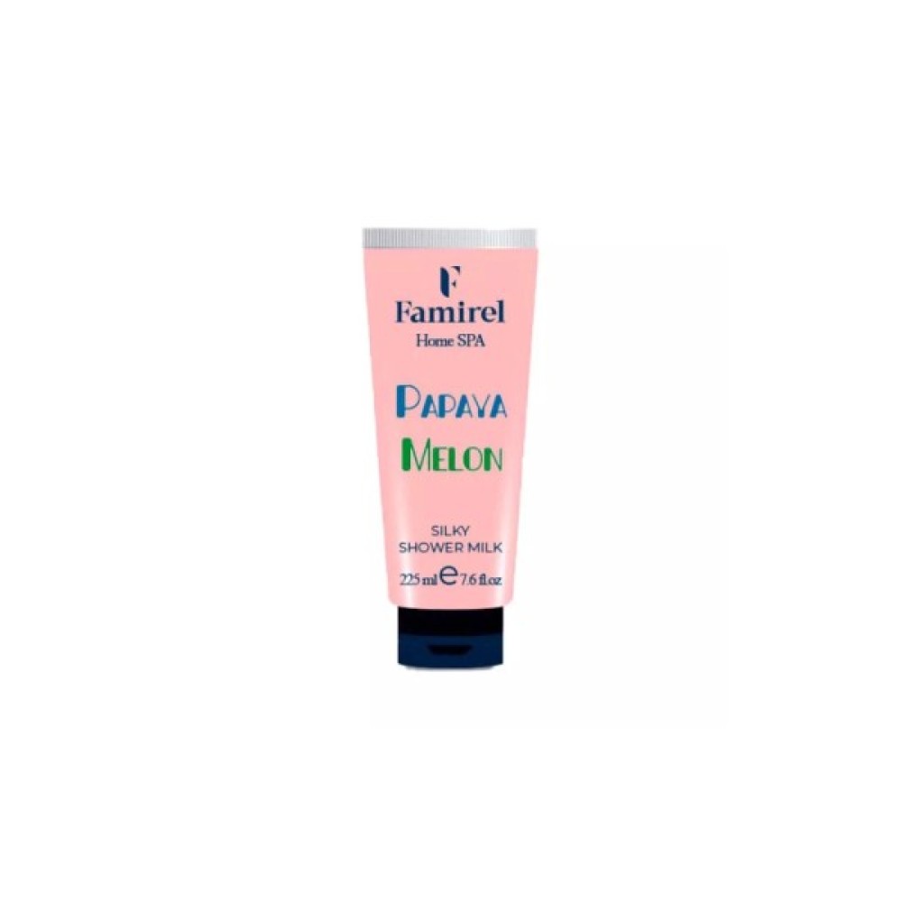 Гель для душу Famirel Шовкове молочко Диня і папайя, об'ємом 225 мл, це втілення розкоші та турботи про вашу шкіру. Ретельно розроблена формула збагачена цінними рослинними екстрактами, які забезпечують не лише ніжне очищення, але й справжній вітамінний заряд для вашого тіла. Екстракти дині та папайї надають глибоке зволоження, а також насичують шкіру необхідними вітамінами, роблячи її гладкою та доглянутою. Наявність олії солодкого мигдалю сприяє підвищенню пружності, а неймовірна олія жожоба забезпечує протизапальний ефект, зберігаючи молодість і красу.