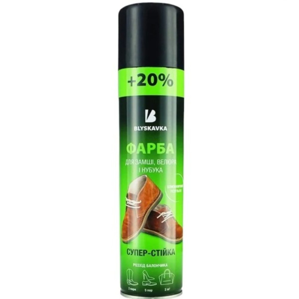 Для догляду за взуттям та аксесуарами із замші, нубуку та велюру вибирайте спеціальні засоби. Фарба у формі аерозолю - ідеальний продукт, розроблений для якісного фарбування таких виробів. Він оновлює колір і значно покращує зовнішній вигляд взуття. До того ж забезпечує водовідштовхувальний ефект, допомагає запобігти появі плям і сольових розводів.