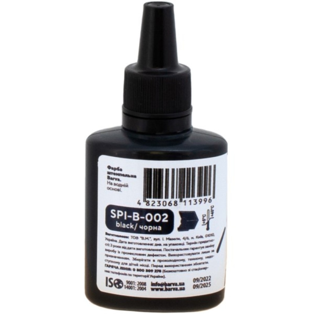 Штемпельна фарба від українського виробника « Barva » призначена для заправки штампів та печаток ручних та автоматичних, датерів, нумераторів. Штемпельна фарба на водяній основі. Фарба для печаток та штампів випускається в економній ємності 30 мл. Для додаткової зручності кожен флакон має дозатор.
